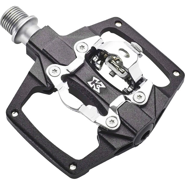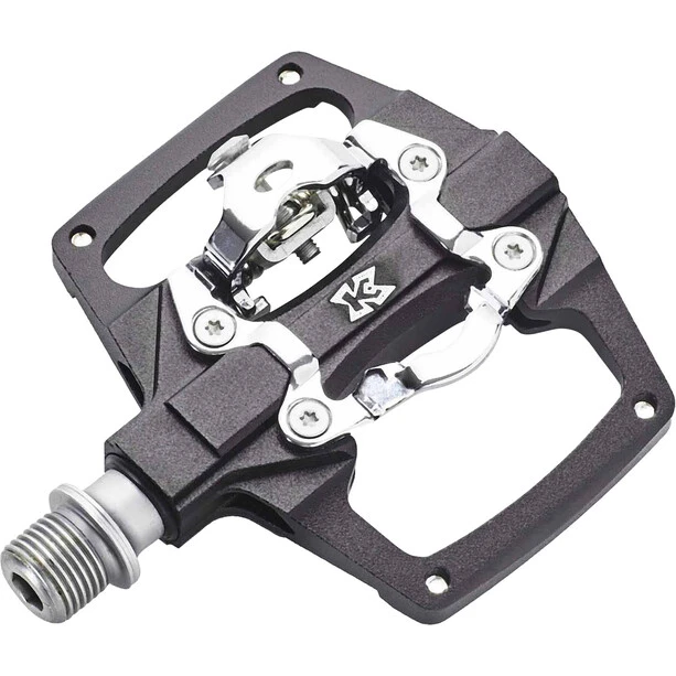 Pédale légère, noble et robuste compatible avec Shimano SPD. Le corps de la pédale est en aluminium CNC 6061. L’axe et les fixations constituées de CroMo. Les 8 goupilles interchangeables du côté de la plate-forme assurent une meilleure stabilité, même sur les pistes les plus sauvages.