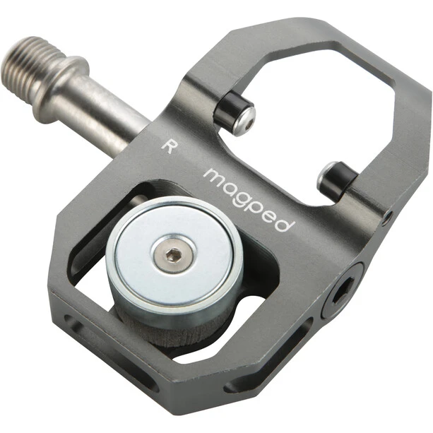 La pédale de magped est équipée de 3 roulements à billes industriels étanches de haute qualité. Les broches de la pédale peuvent être changées si nécessaire. La hauteur de l’aimant haute performance en néodyme est réglable grâce à une suspension polymère intégrée spéciale.