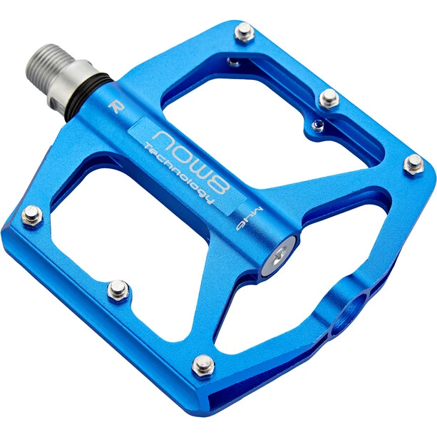 Le NOW8 Flatpedal M46 est disponible avec le logo NOW8 et un marquage pour la gauche ou la droite. Il pèse 342gr, a un axe CroMo et 6 broches.