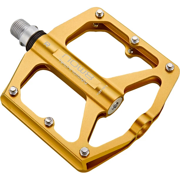 Le NOW8 Flatpedal M46 est disponible avec le logo NOW8 et un marquage pour la gauche ou la droite. Il pèse 342gr, a un axe CroMo et 6 broches.