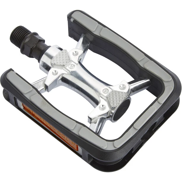 Pédale confort avec patin Kraton antidérapant, axe Cr-Mo pour une longue durée de vie, réflecteurs intégrés.