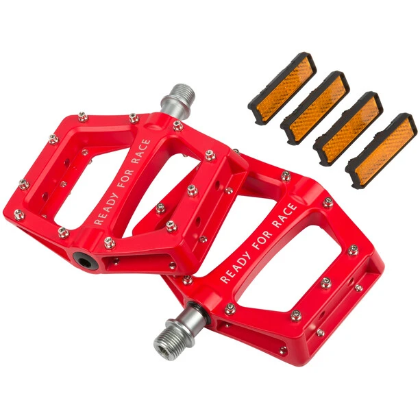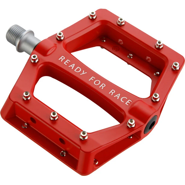 Les pédales plates légères sont en aluminium et sont équipées d’un axe Cr-Mo. Les pédales sont montées avec des roulements de haute qualité. Les goupilles antidérapantes sont interchangeables et offrent la meilleure adhérence sur le vélo.