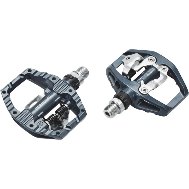 Les pédales SPD-A530 de Shimano sont le modèle le plus polyvalent de la marque, la paire possède deux faces différentes pour garantir un maximum de facilité d’utilisation lors de vos déplacements et sorties sportives. Conçue pour s’adapter en toutes situations, cette paire de pédales à double chaussage pourra convenir aussi bien pour le vélo en loisir que pour les randonnées en VTT. Choisissez en fonction du moment l’efficacité du système automatique SPD ou la simplicité de la plate-forme plate, stable et concave pour caler la chaussure dans une position d’appui favorisant le confort au pédalage. De plus, la face plate est doté de picots pour avoir un maximum d’adhérence lors des conditions humides.