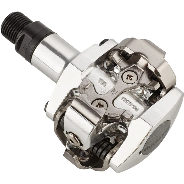 Les pédales Shimano PD-M505 sont parfaites pour une utilisation tout-terrain : compactes, légères et avec une fixation SPD double face.