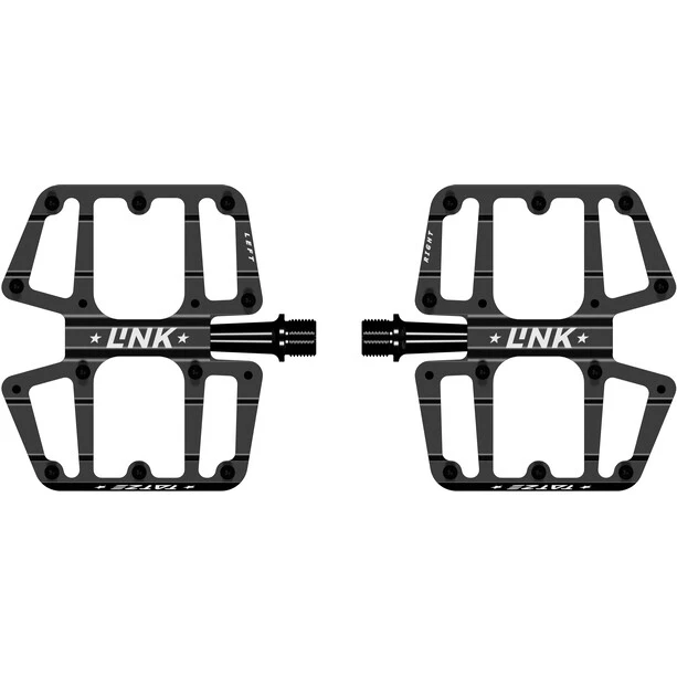 La pédale LINK est une pédale plate extrêmement fine. La grande plateforme de 112cm2 (113x99mm/Lxl) et les 40 TATZE PINs avec une surélévation ciblée assurent une énorme adhérence et une bonne connexion entre la pédale et la chaussure. Pour augmenter encore l’adhérence ou maximiser la surface de contact, il est possible de visser 4 PINS supplémentaires par côté. La LINK évite tout contact indésirable avec le sol grâce à sa construction extrêmement fine. Le corps de la pédale ne mesure que 8,8 mm sur le bord extérieur exposé, ce qui fait de la LINK l’une des pédales les plus fines du marché.