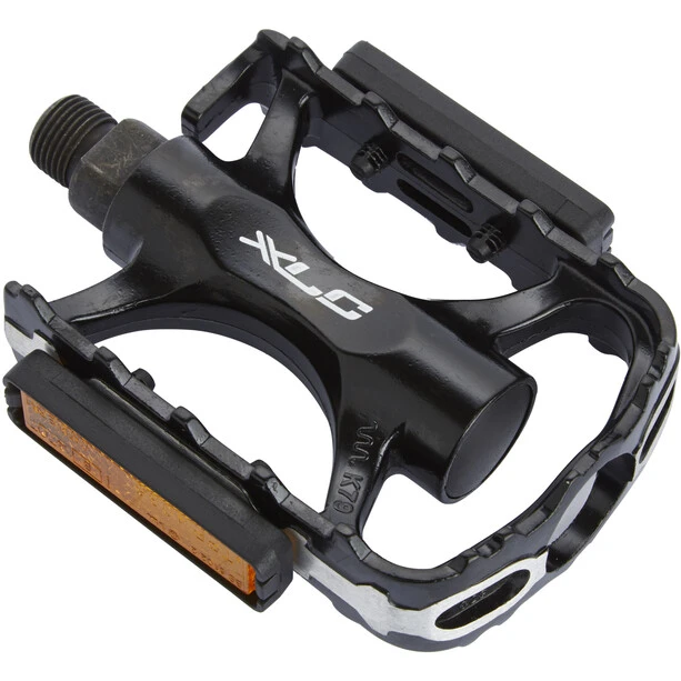 La pédale XLC PD-M02 MTB/ATB est une pédale simple parfaitement adaptée à une utilisation en ville, en randonnée et pour des circuits faciles en VTT. Elle est équipée de 2 réflecteurs par pédale. Le corps de la pédale et la cage sont en aluminium fraisé CNC monobloc. Quelques griffes sur le bord de la pédale assurent une meilleure adhérence. L’axe Boron est équipé de roulements à billes étanches de haute qualité. Le poids est de 452 g par paire.
